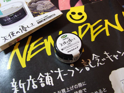 ↑丸井溝の口店にLUSHがオープンしたので見に行ったら、サンプルをいただきました。「天使の優しさ」という泡立たない洗顔料。匂いはキツイけど、ビックリするくらいのトゥルトゥル感!ソープ以外は興味は無かったけど、これなら買ってもいいかな~と思った一品。