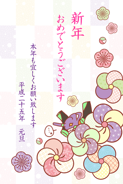 ↑こちらはエヴァが好きそうな友人に送った印刷用年賀状。(拡大できます)