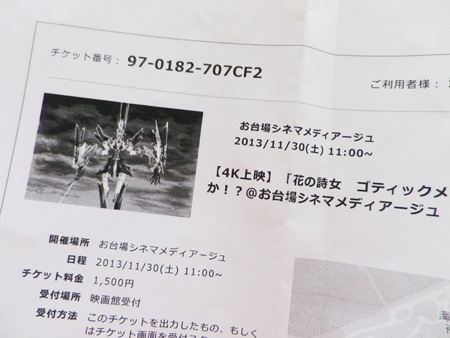「花の詩女 ゴティックメード」が再上映されるので、お台場に行ってきました。