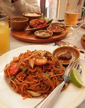 晩御飯はシンガポール料理を。ミーゴレン美味しかったです(´▽`)