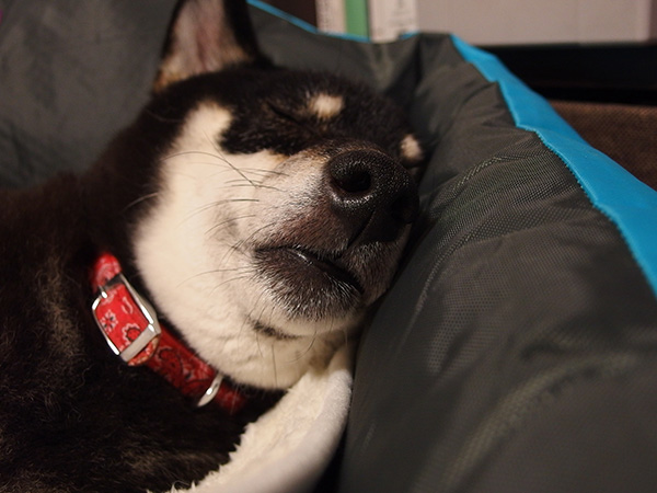 帰宅後のぐったりのっち。飼い主も拭き掃除でぐったり。